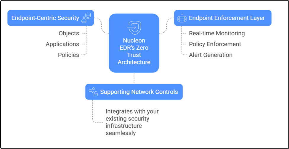 The Endpoint Enforcement Layer serves as the core of Nucleon EDR's Zero Trust framework, continuously applying and evaluating rules and policies.